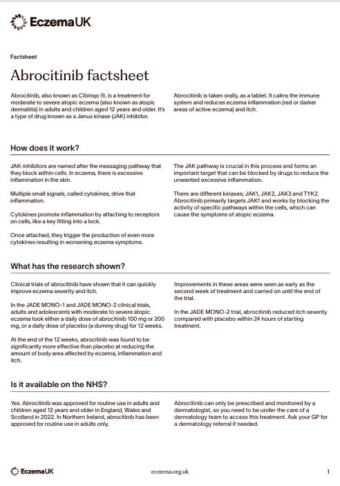 If you think you might be eligible for abrocitinib, speak to your dermatologist about the possibility of trying it. If you’re not currently under the care of a dermatologist, ask your GP for a dermatology referral. You will need to see a specialist dermatologist in a hospital to access this treatment.